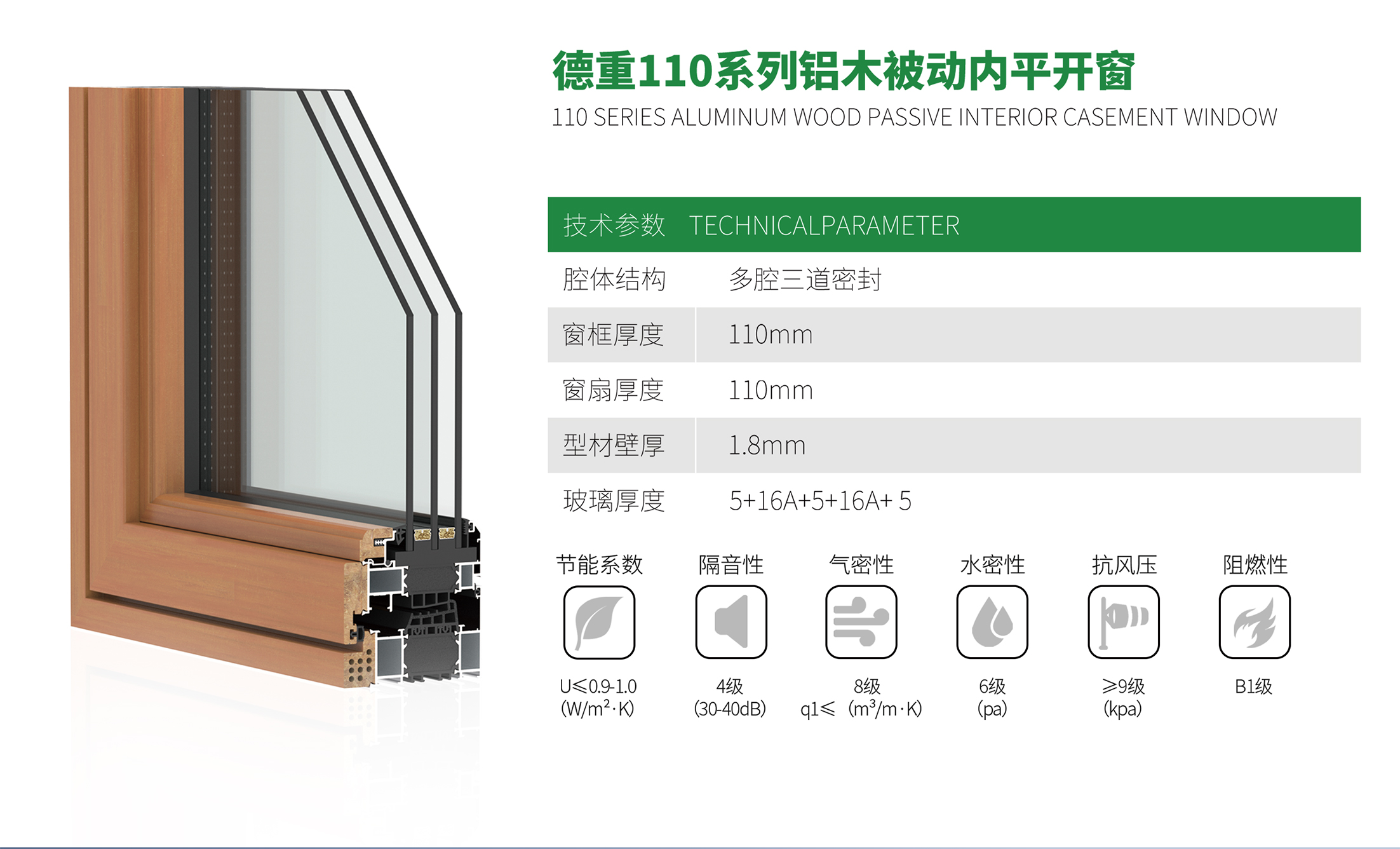 德重110系列铝木被动内平开窗